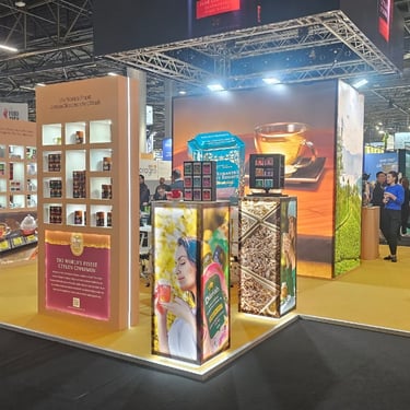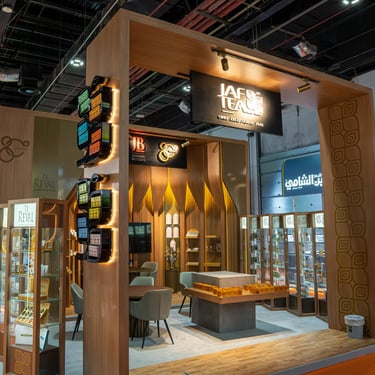 Custom exhibition stand delivered for Jaf Tea at Gulfood Dubai, reflecting the brand’s heritage and premium positioning. Continental Stand managed design coordination, production, and installation to ensure a refined and welcoming exhibition presence.